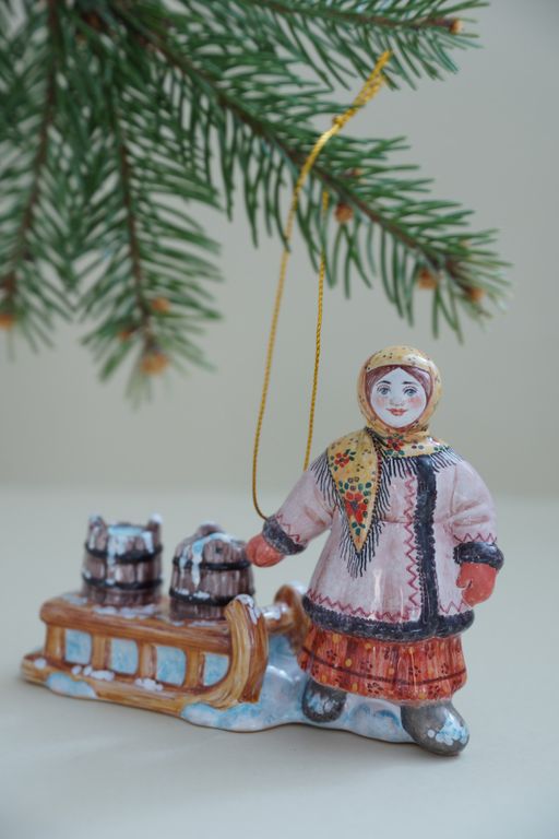 Крестьянка с санками - яркая красивая ёлочная игрушка.
