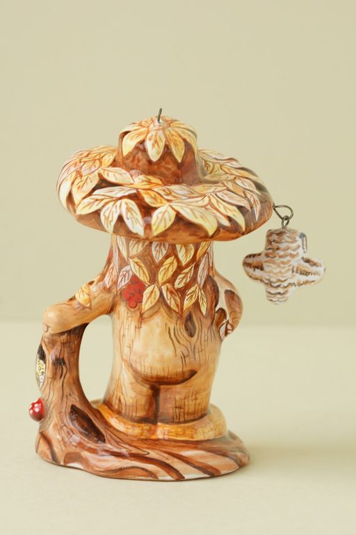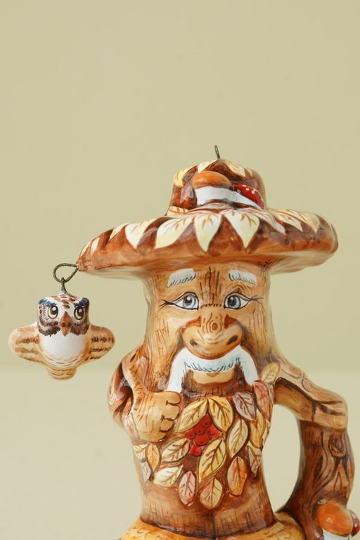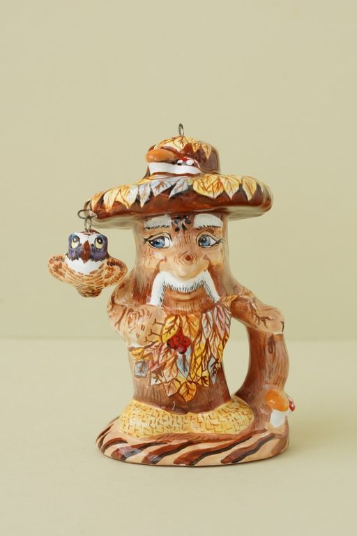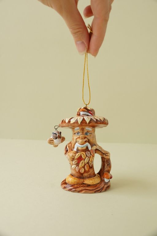 Необычная елочная игрушка, ввиде красивого Лешего с птичкой.