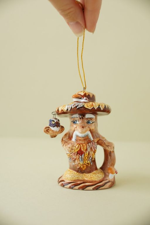 Необычная ёлочная игрушка, ввиде красивого Лешего с птичкой.