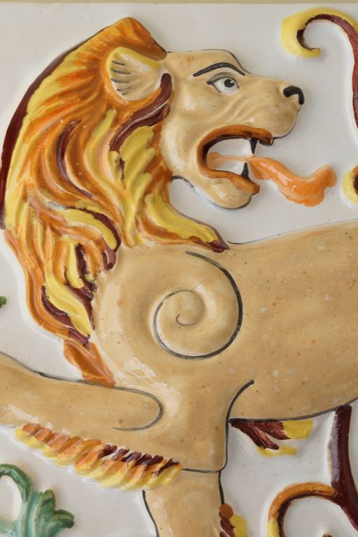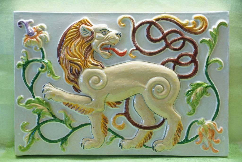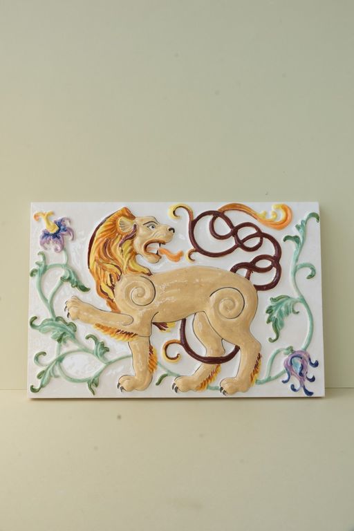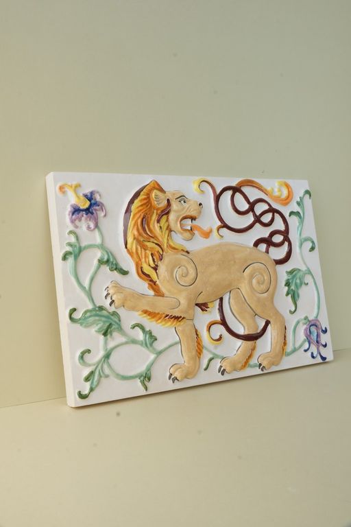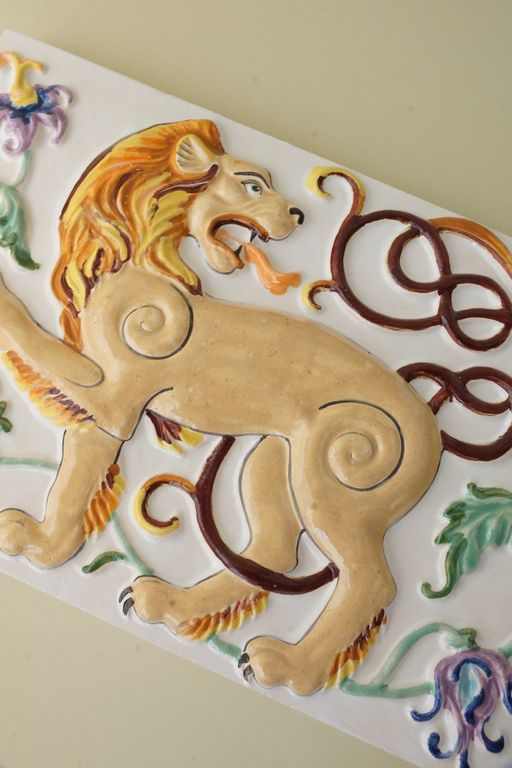 Лев царский - изразец из белой глины.