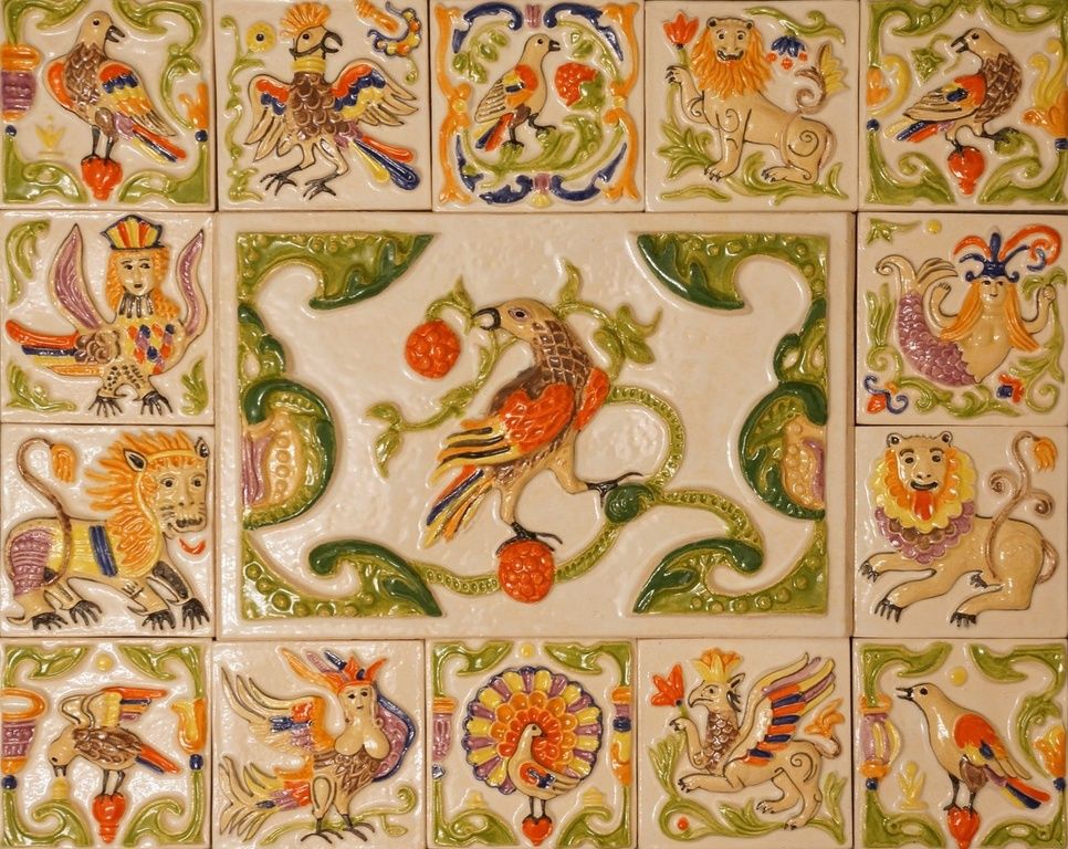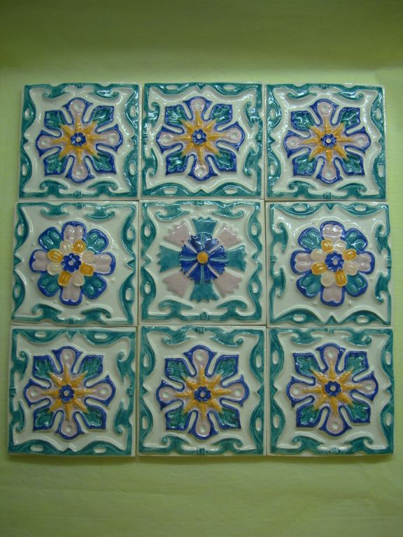 Размер каждой изразцовой плитки 10см на 10см. В 1 кв.м. - 100 шт.