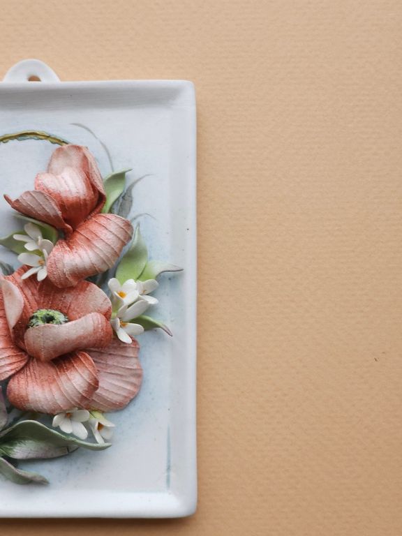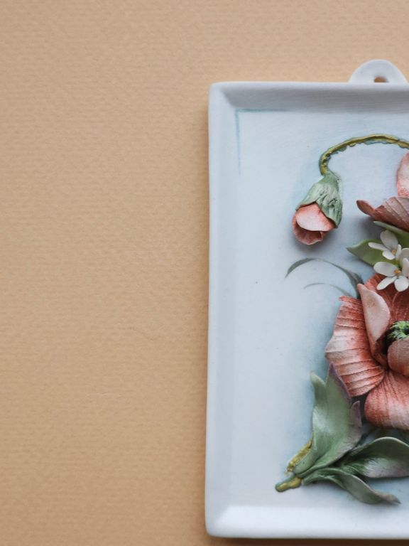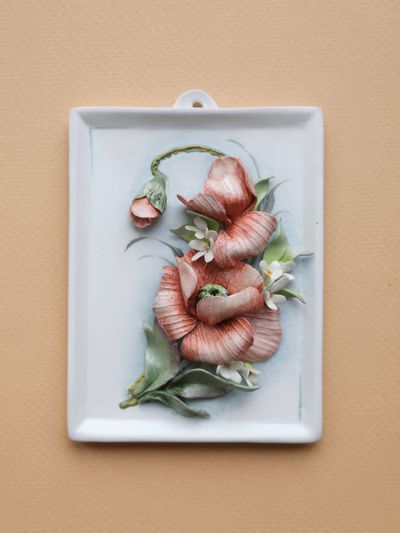 Керамическая фарфоровая цветочная композиция на плакетке.