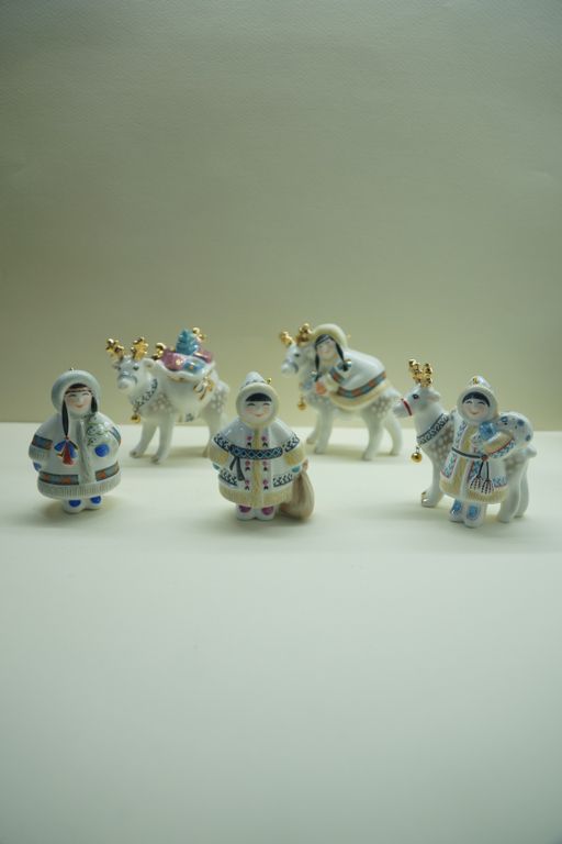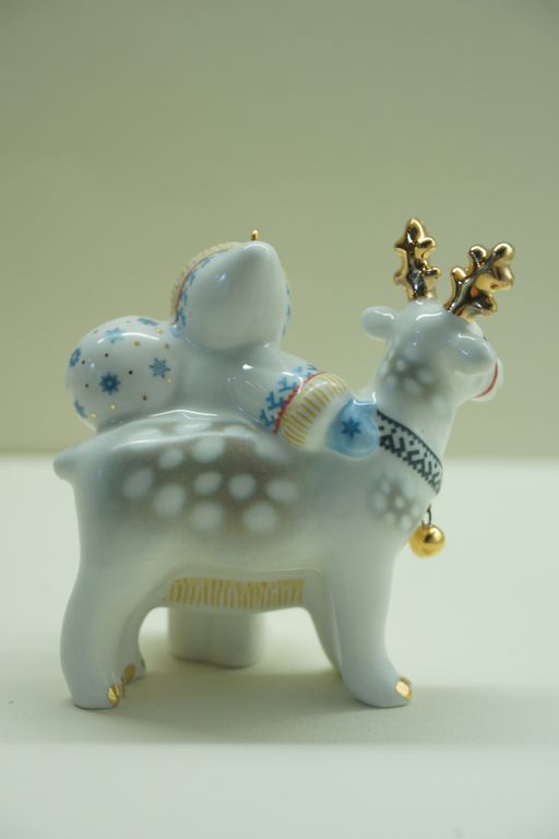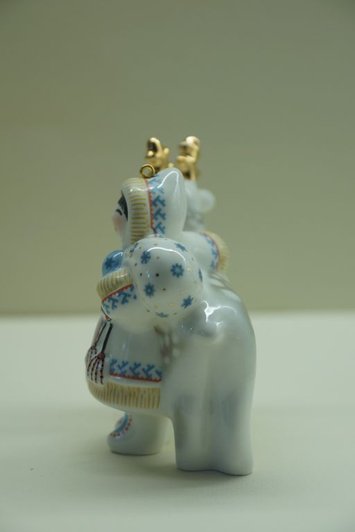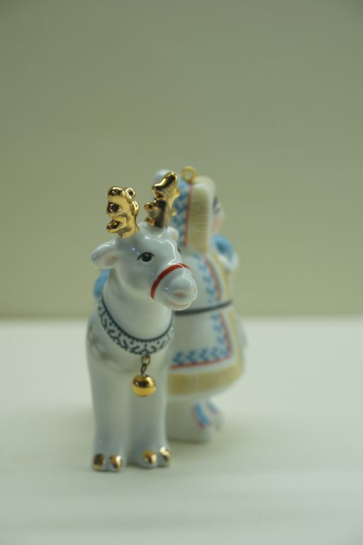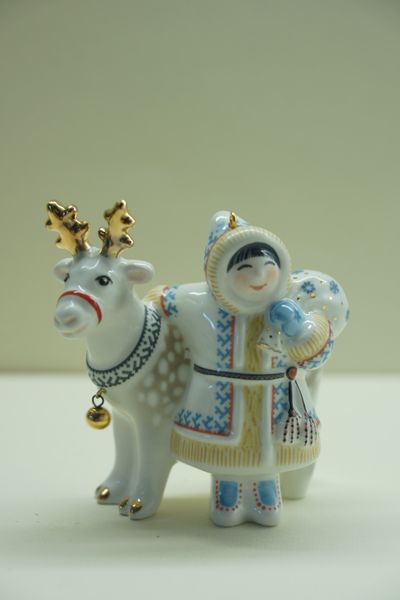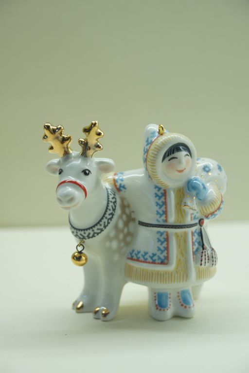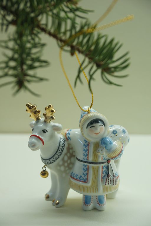 Мальчик с оленем - яркая фарфоровая ёлочная игрушка.