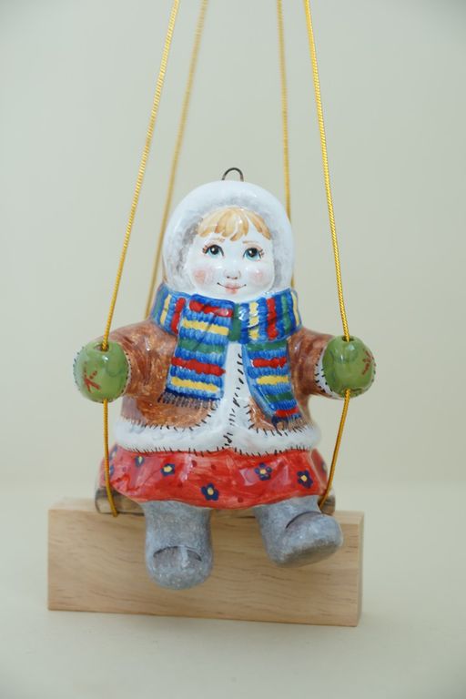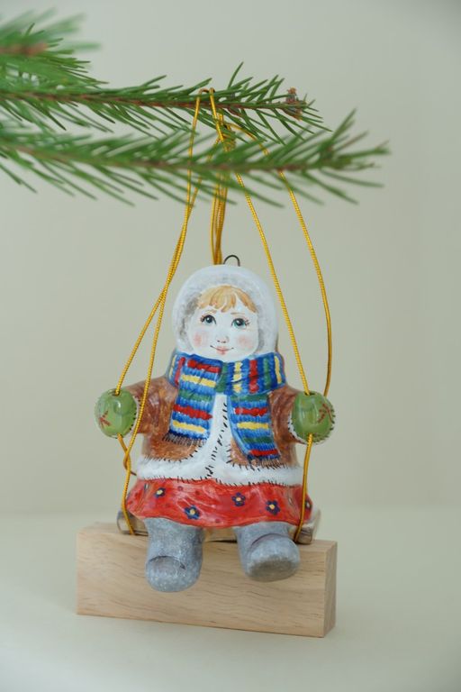 Яркая ёлочная игрушка "Маруся на качелях".