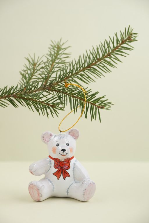 Медвежонок плюшевый - красивая ёлочная игрушка.