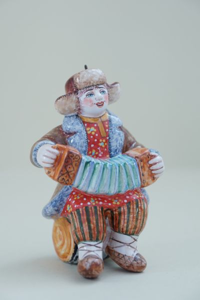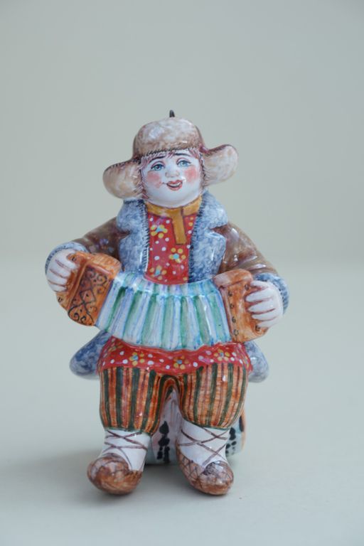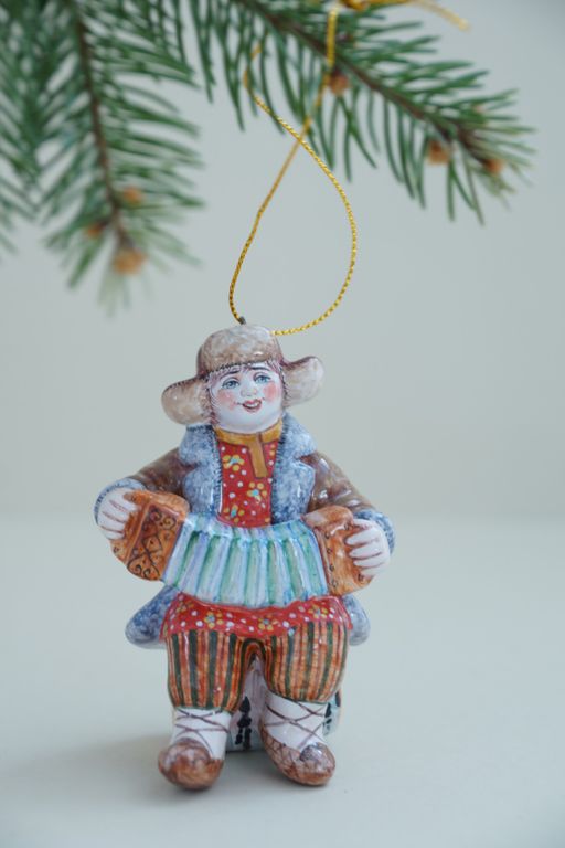 Мужичок с гармошкой - яркая красивая ёлочная игрушка.