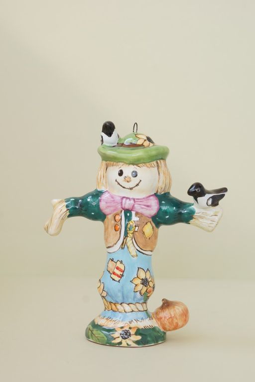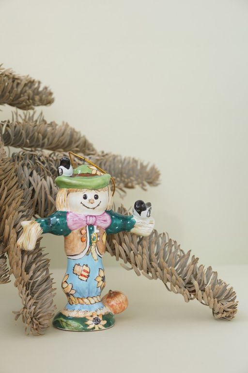 Необычная елочная игрушка, ввиде красивого забавного Пугало в шляпке.