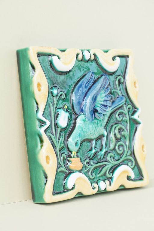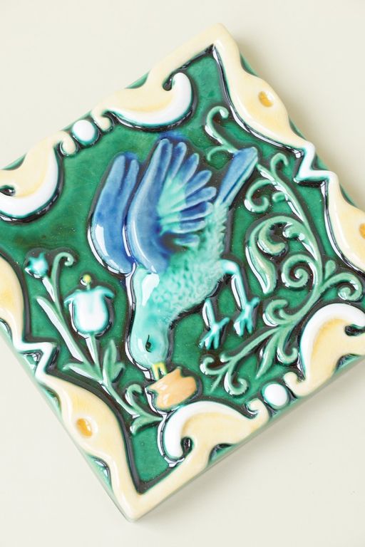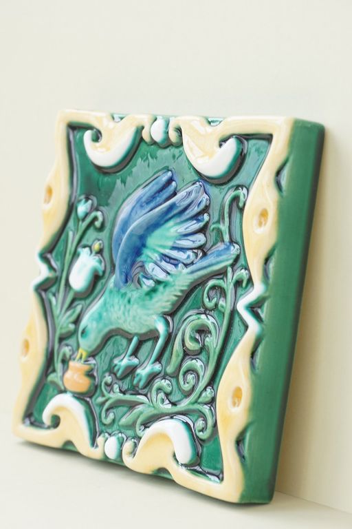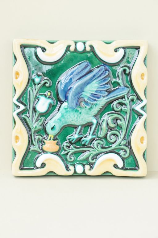 Пьющая птица - керамическая цветная плитка из серии "Русские изразцы (цветные)".