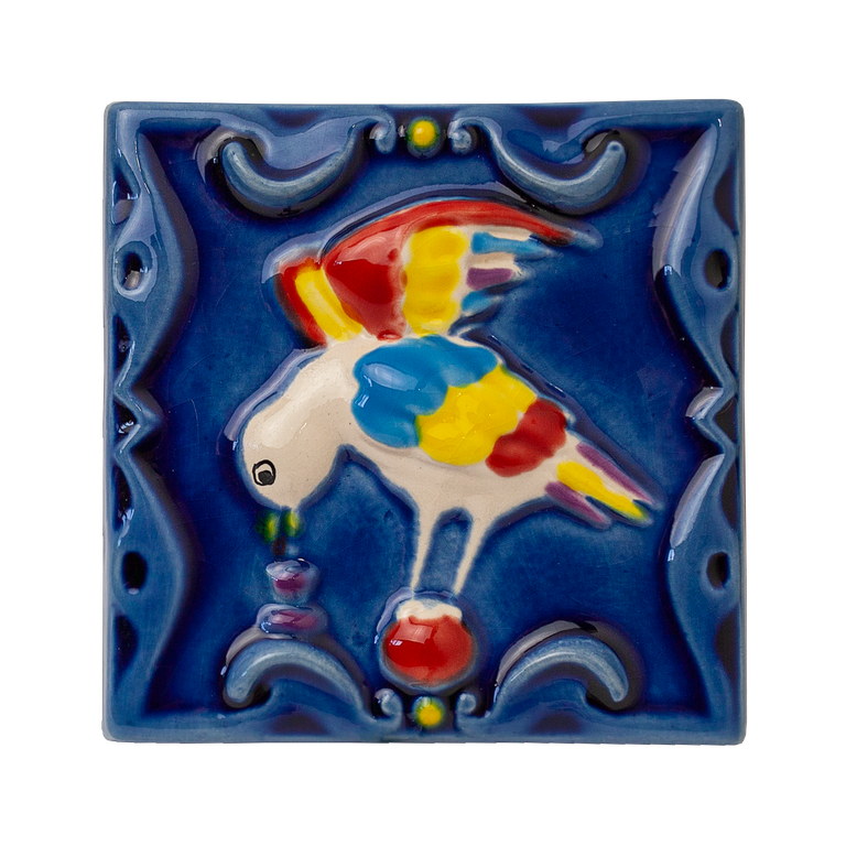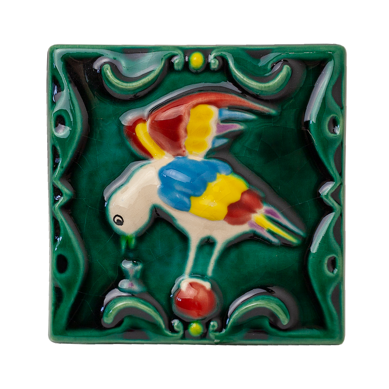 Пьющая птица - керамическая малая цветная плитка из серии "Славянские изразцы".