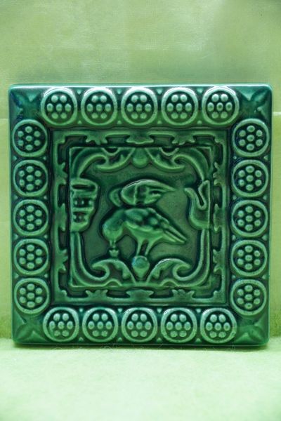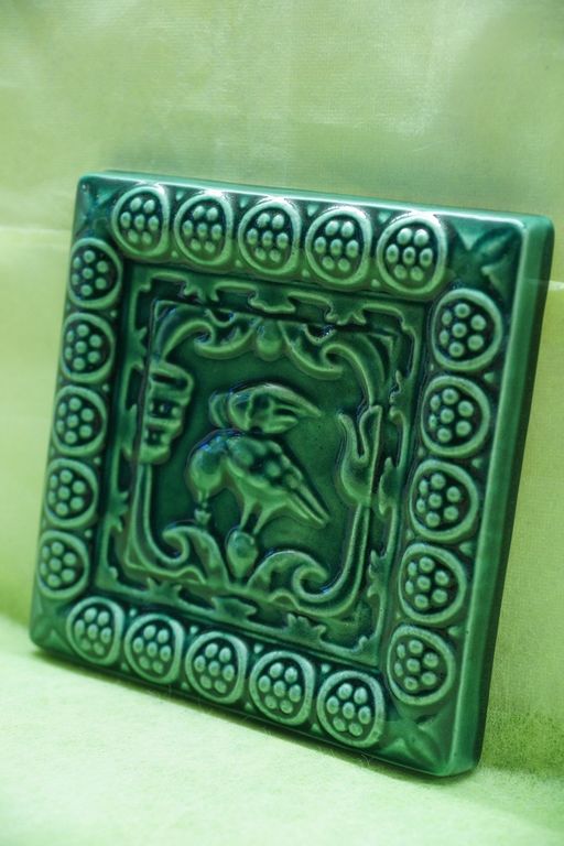 Пьющая птица - керамическая однотонная плитка из серии "Славянские изразцы".