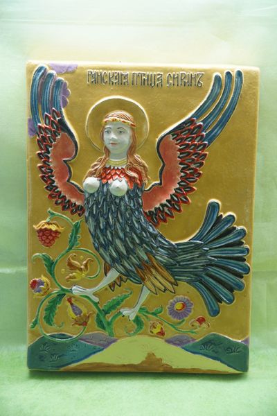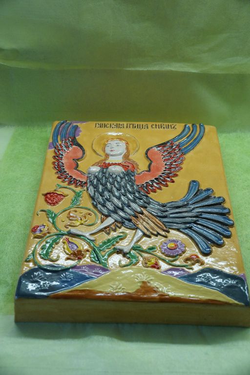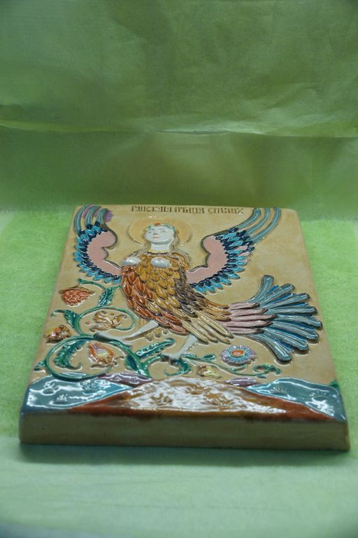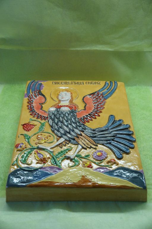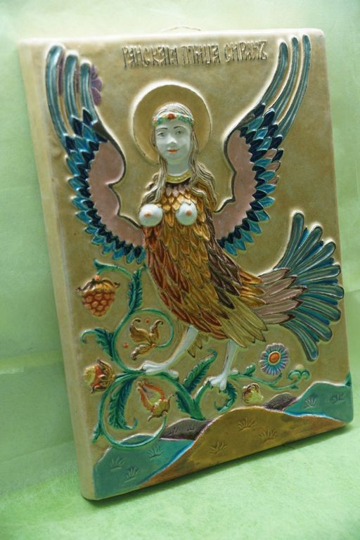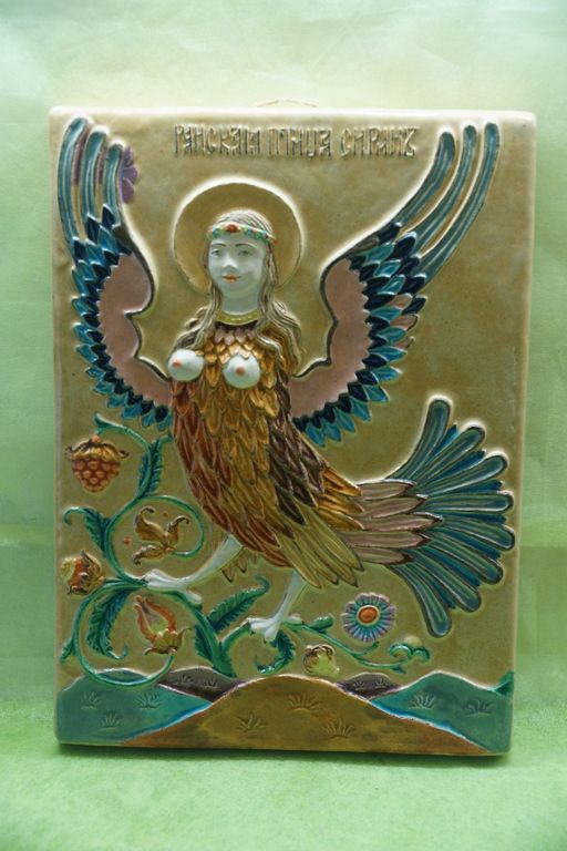 Райская птица Сирин - изразец из шамотной глины.