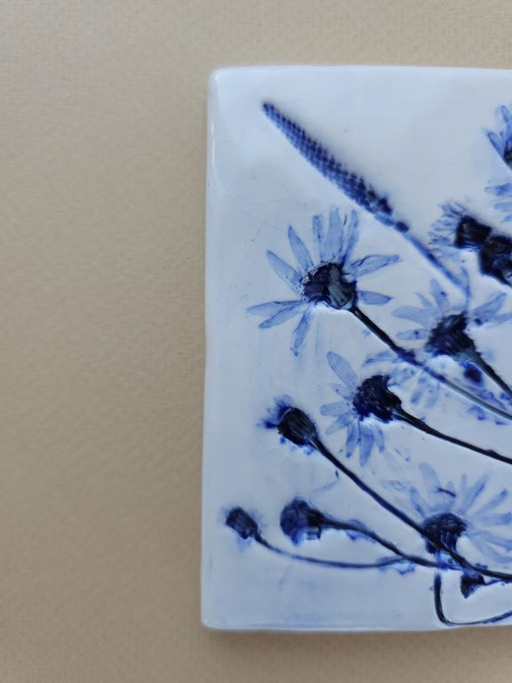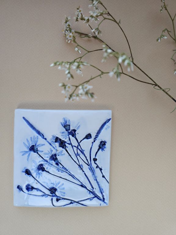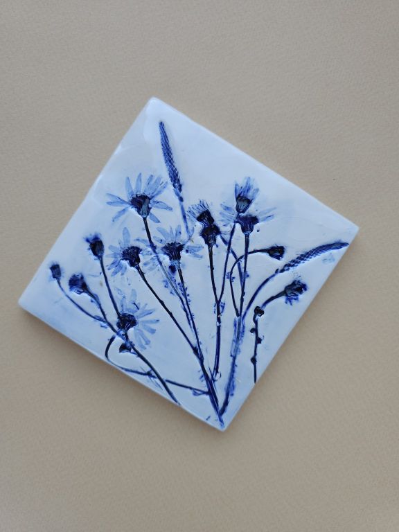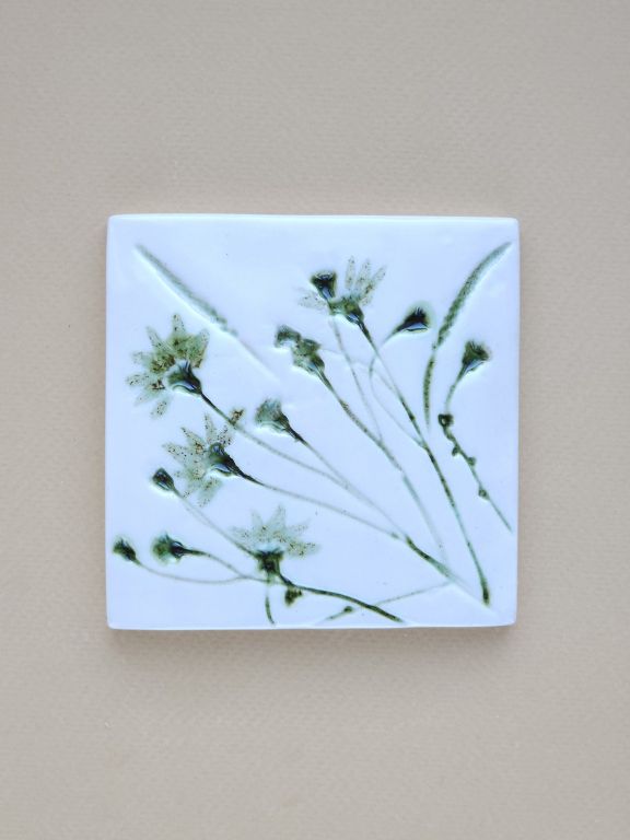 Ромашка - изразцовая цветная плитка из серии "Цветы на белом".