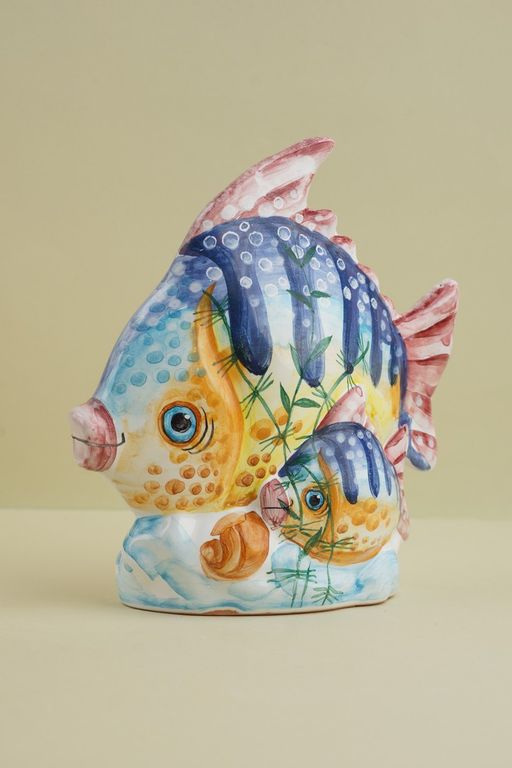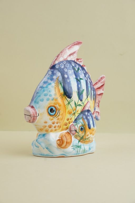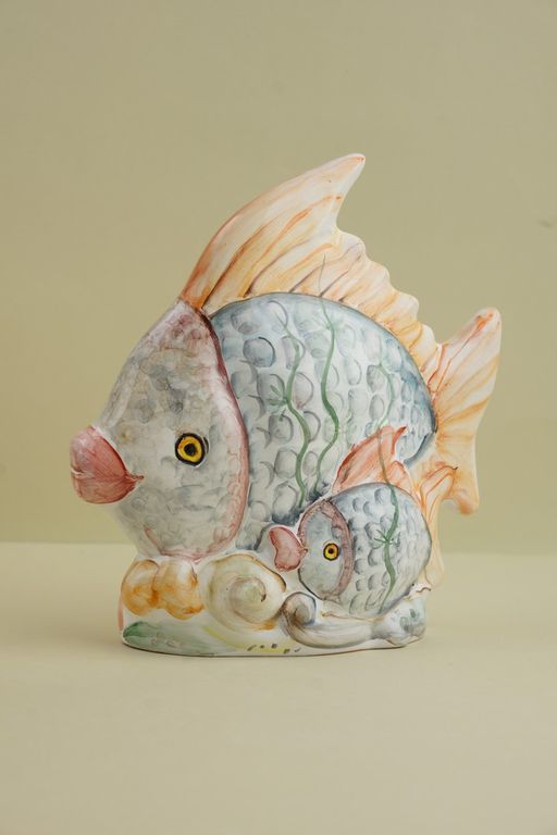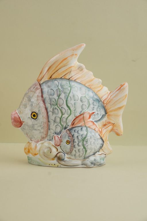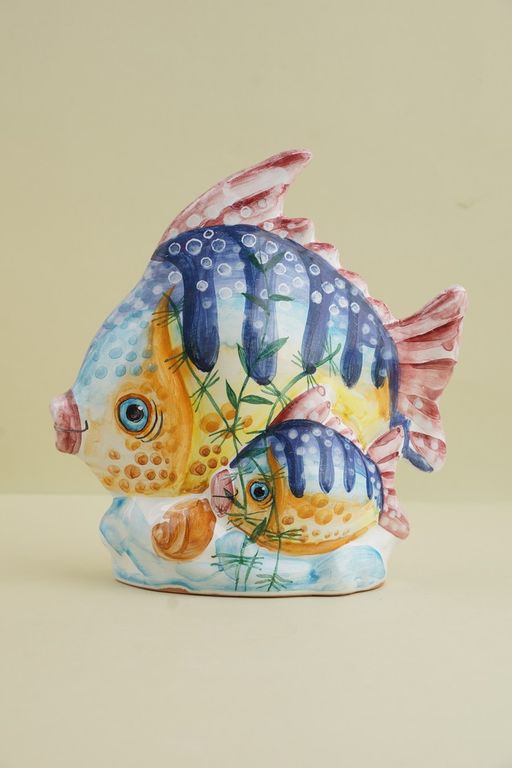 Оригинальная майоликовая фигура в виде семейки необычных рыбок.