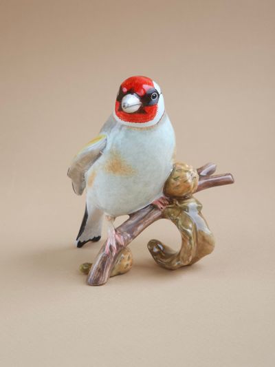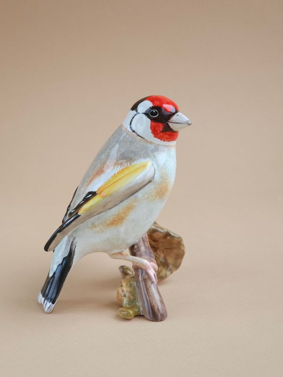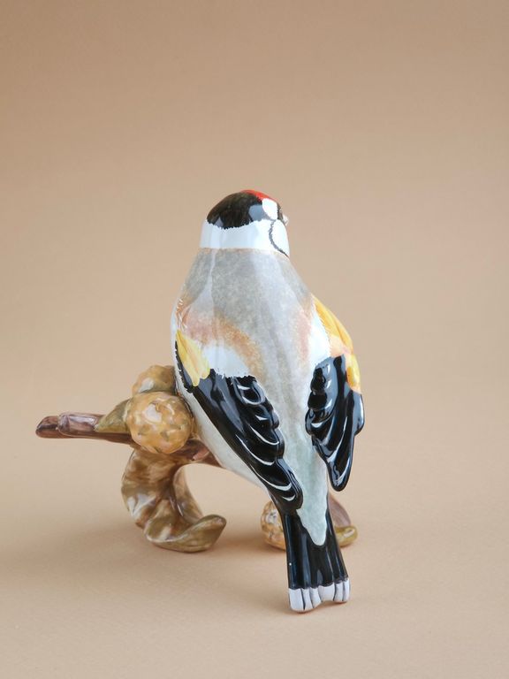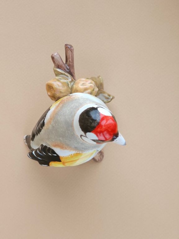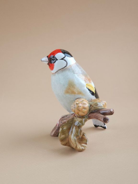 Красивая майоликовая фигура щегла.