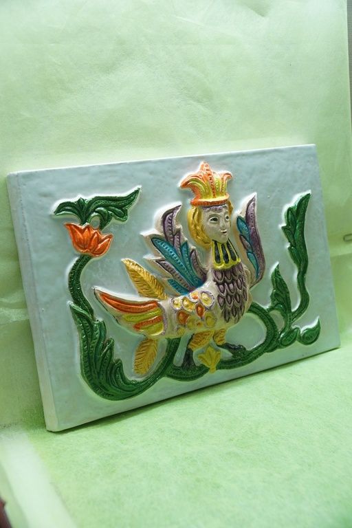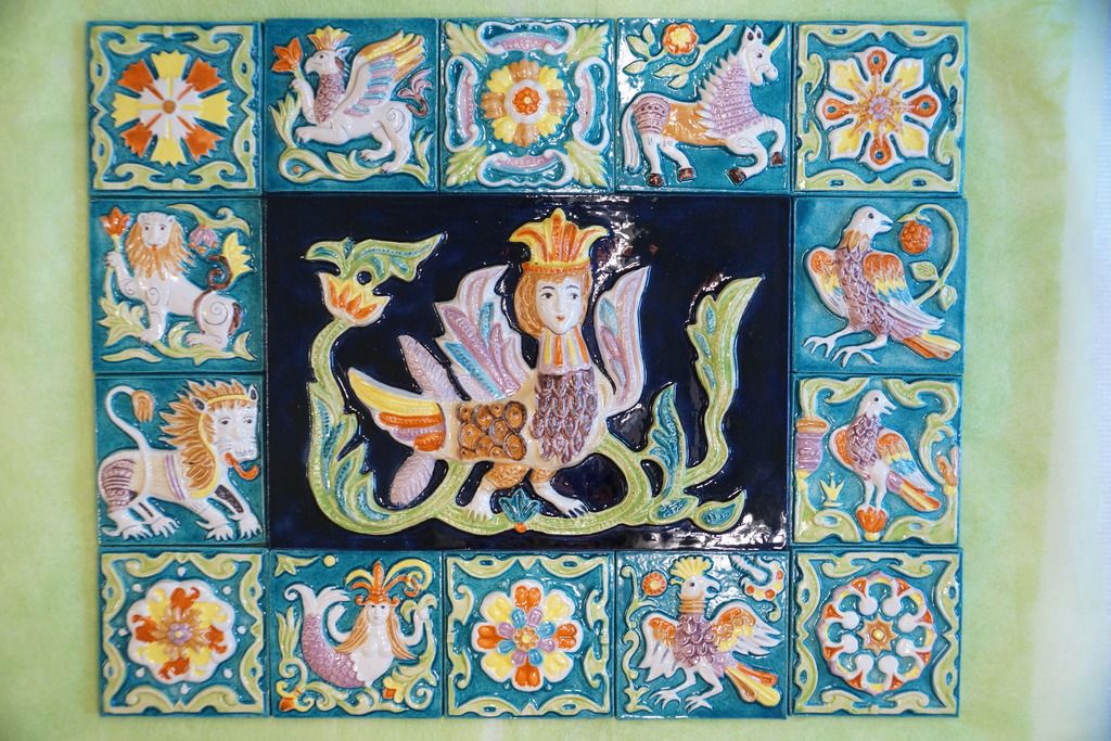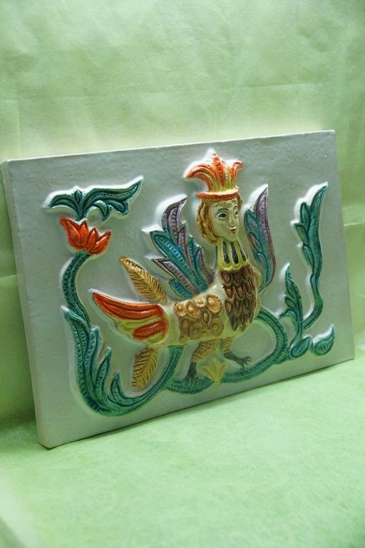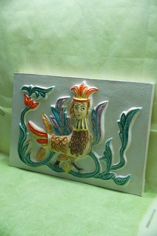 Сирин - фасадный цветной изразец из серии "Древние символы".