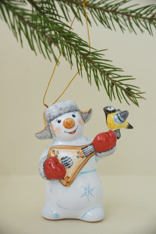 Снеговик с балалайкой - яркая красивая ёлочная игрушка.