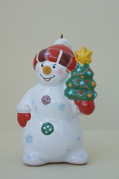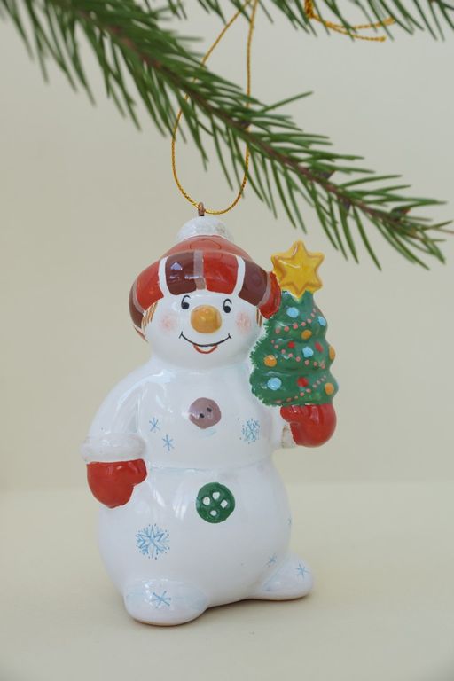 Снеговик с ёлкой - яркая красивая ёлочная игрушка.