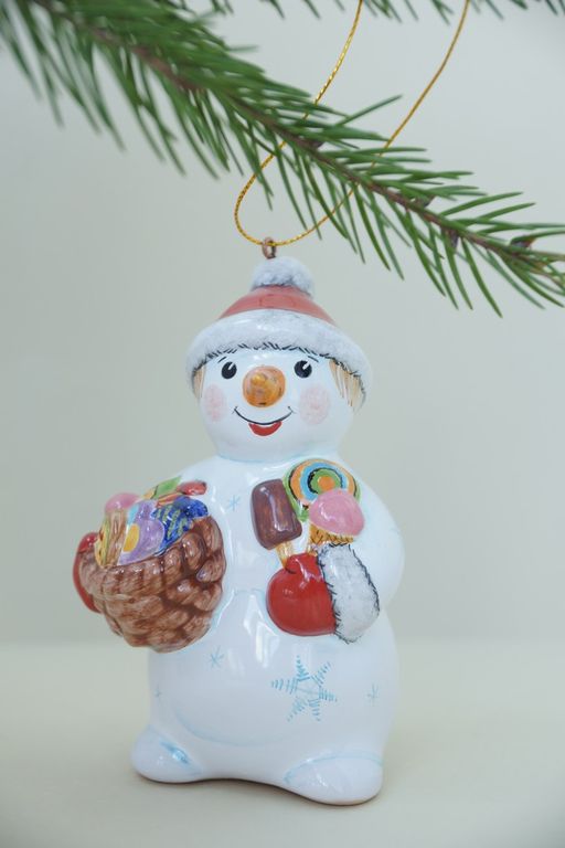 Снеговик со сладостями - яркая красивая ёлочная игрушка.