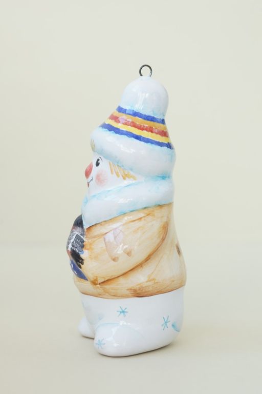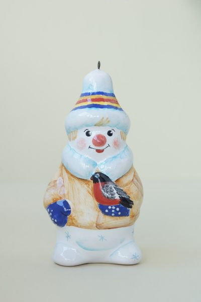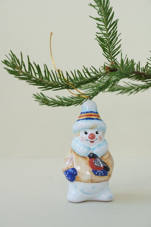 Снеговик со снегирем - яркая красивая ёлочная игрушка.