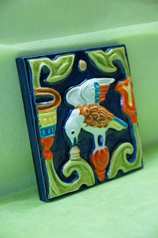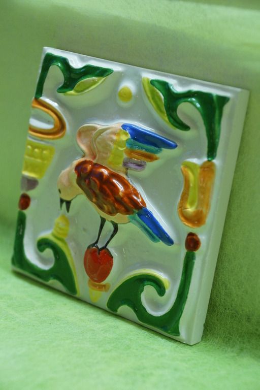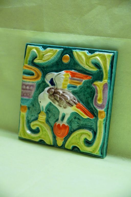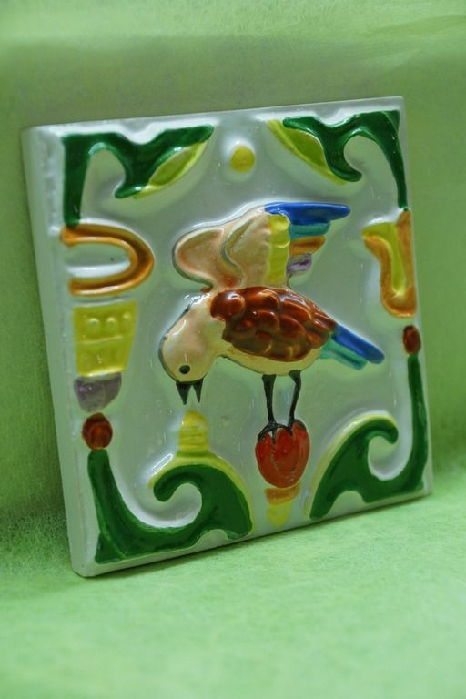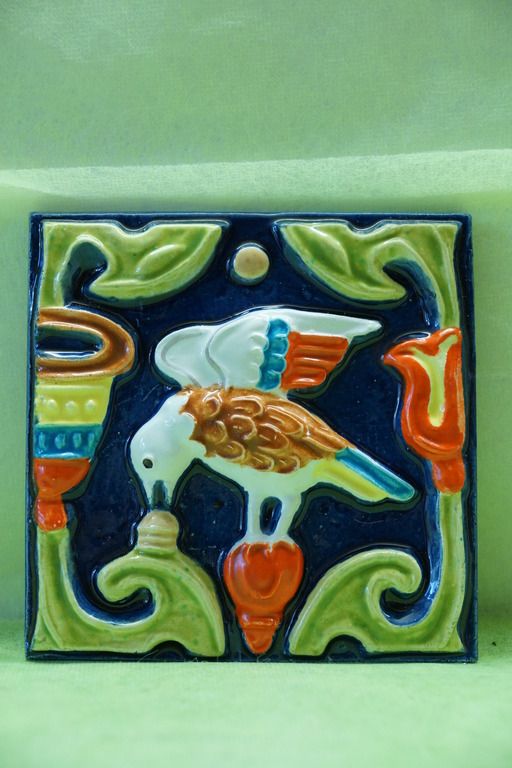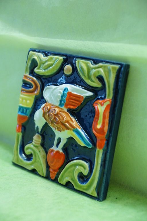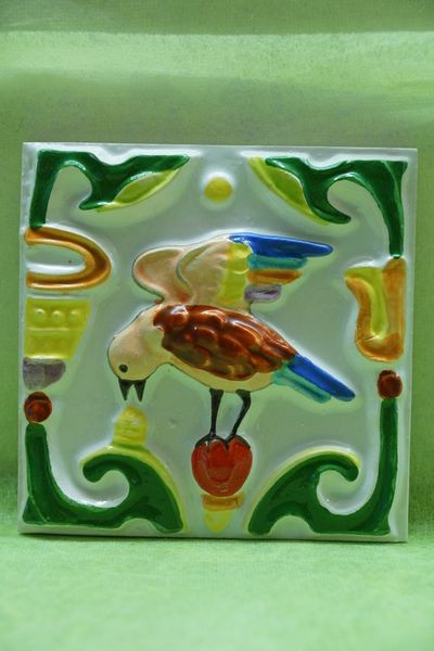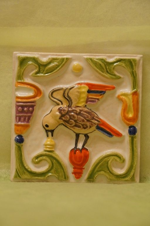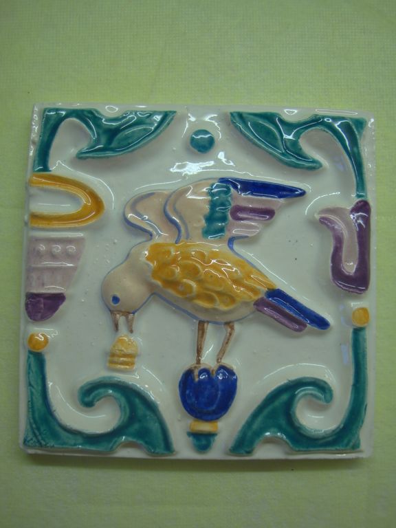 Соловей и чаша любви - изразцовая цветная плитка из серии "Древние символы".