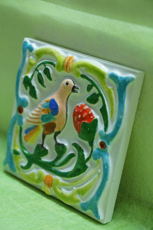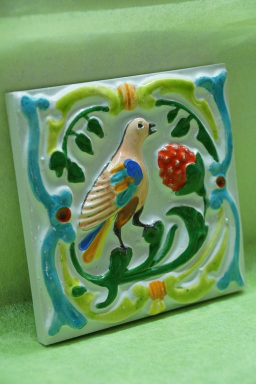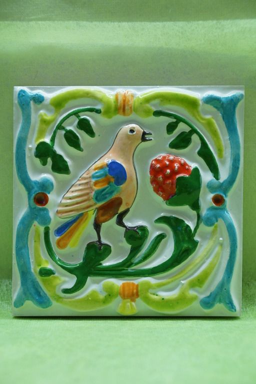 Соловей Красной Горы - изразцовая цветная плитка из серии "Древние символы".