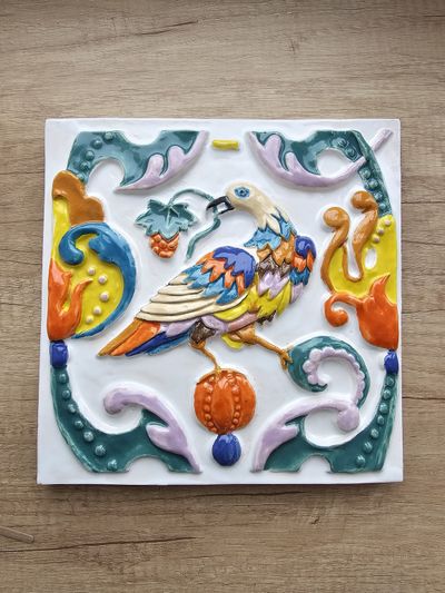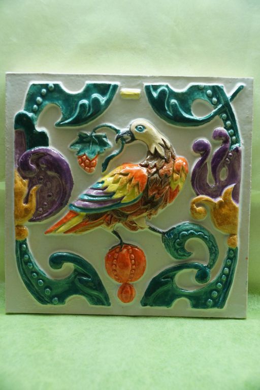 Соловей на празднике урожая - фасадный цветной изразец из серии "Древние символы".