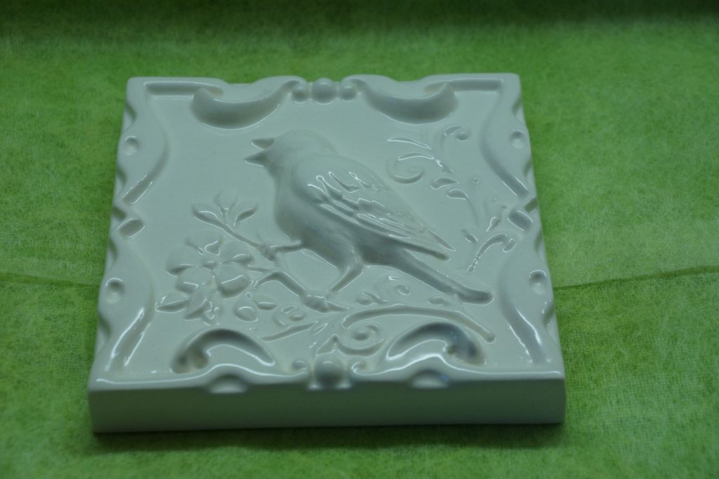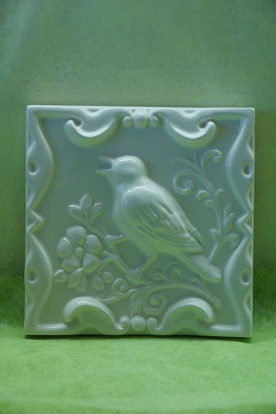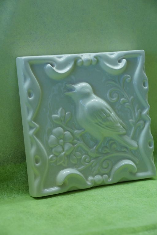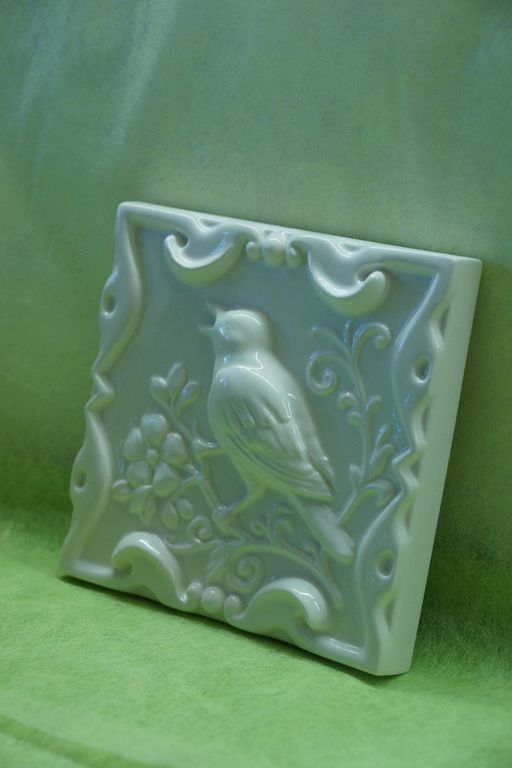 Соловей на ветке - керамическая однотонная плитка из серии "Русские изразцы (однотонные)".