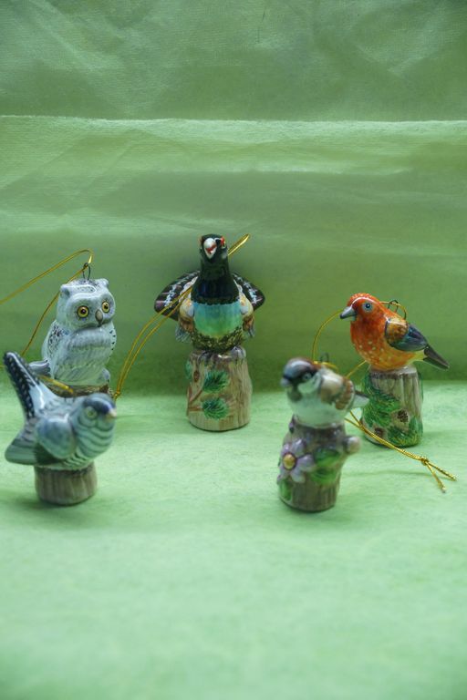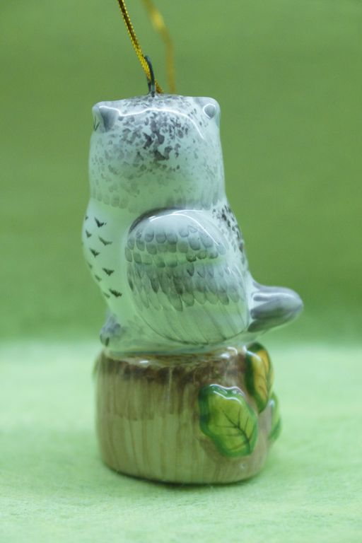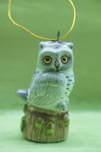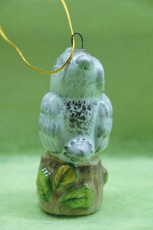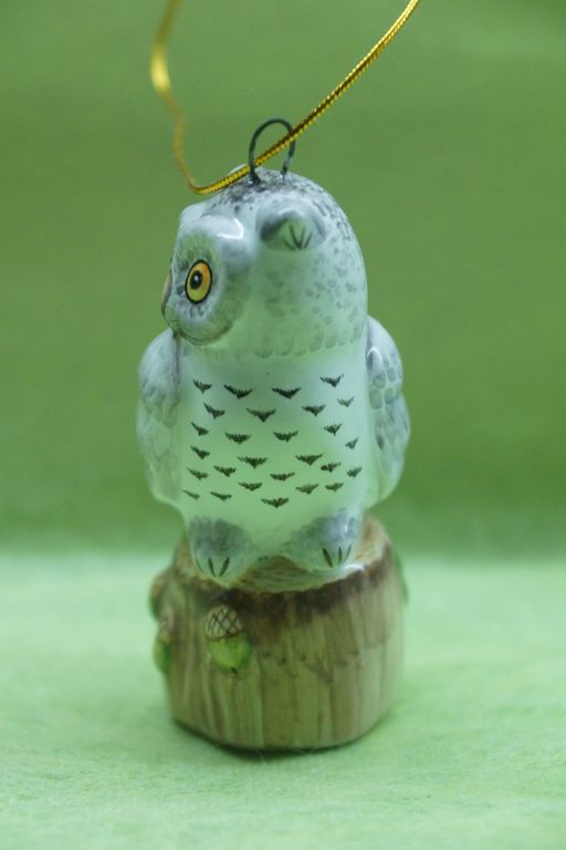 Яркая красивая елочная игрушка очень совы на пеньке.