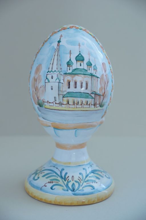 Уникальный сувенир в виде яйца, расписанного в технике ярославской майолики.