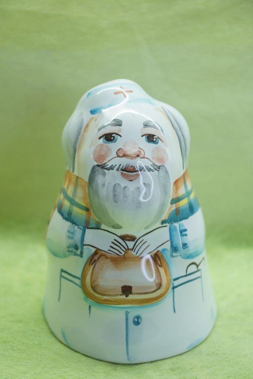 Веселый доктор - майоликовый колокольчик в виде известного сказочного героя доктора Айболита, может быть оформлен в различные цвета.