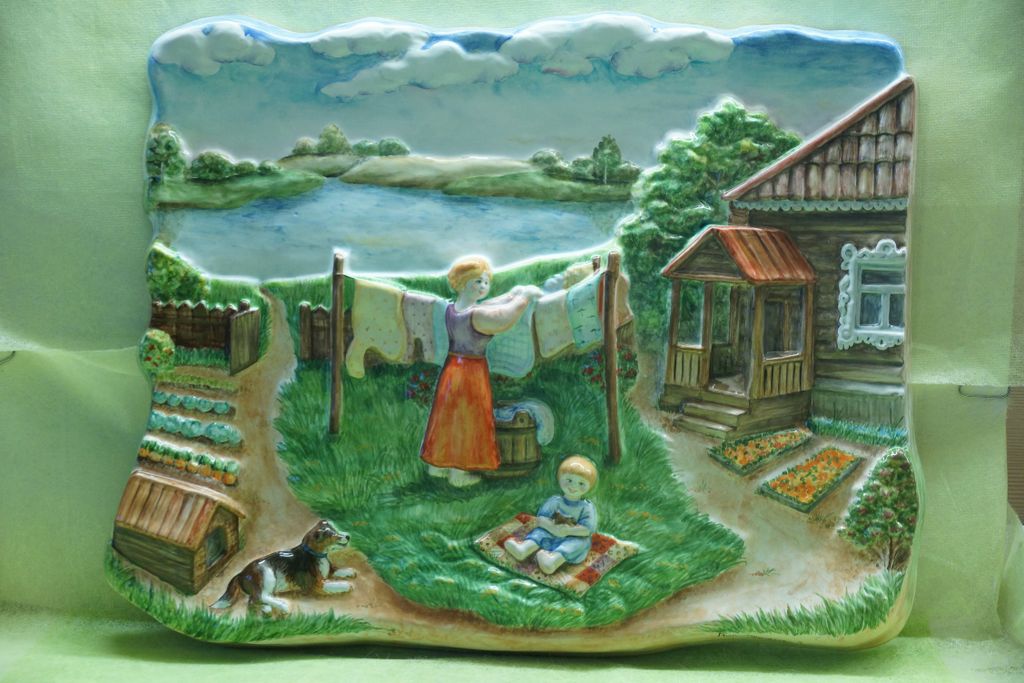 Яркое красивое панно "Во дворе" станет отличным подарком Вам и Вашим близким.