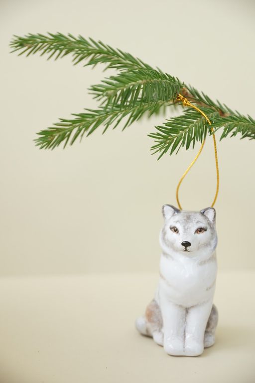Яркая красивая ёлочная игрушка в виде симпатичного волка.