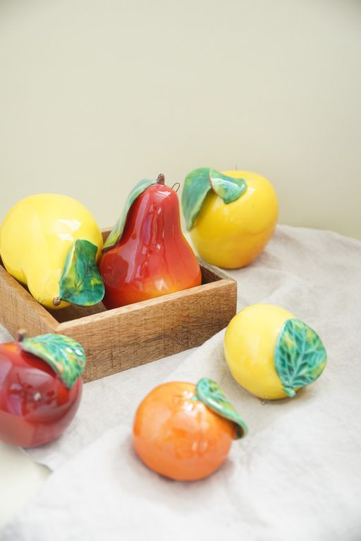 Красивый керамический фрукт - яблоко с листом.