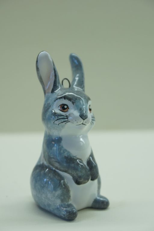 Яркая красивая ёлочная игрушка в виде симпатичного зайчика.