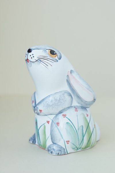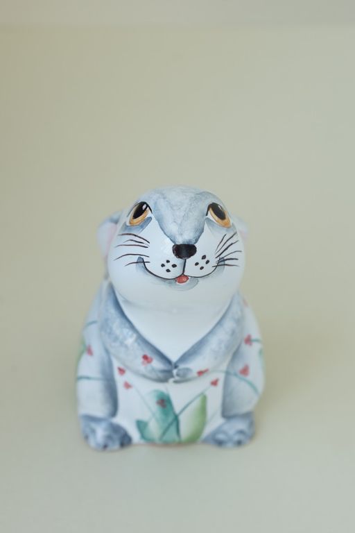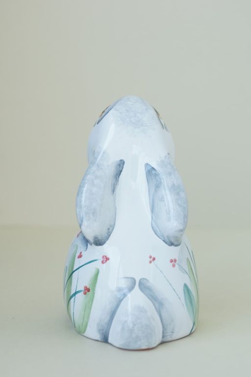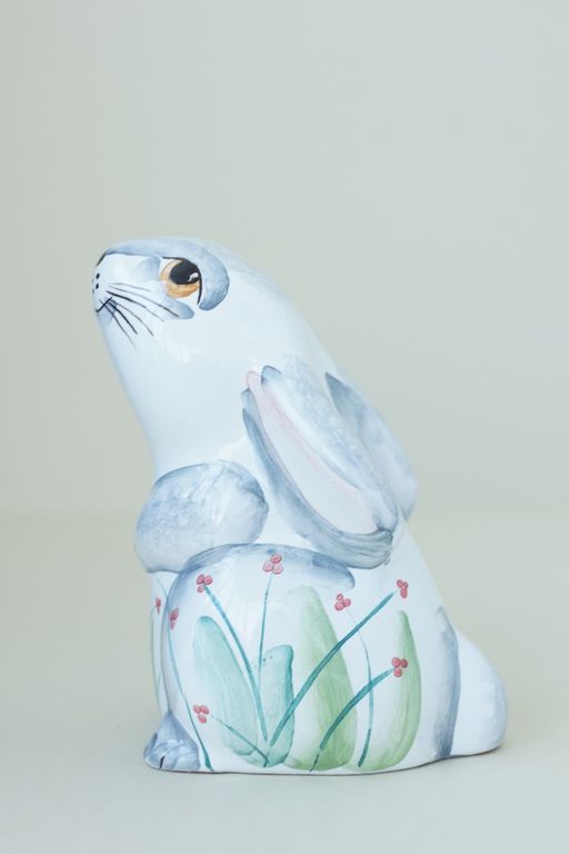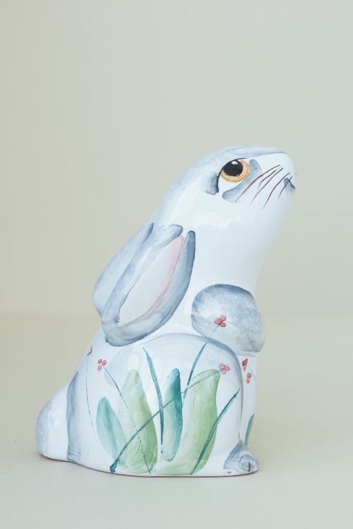Красивая майоликовая фигурка любопытного зайчонка.