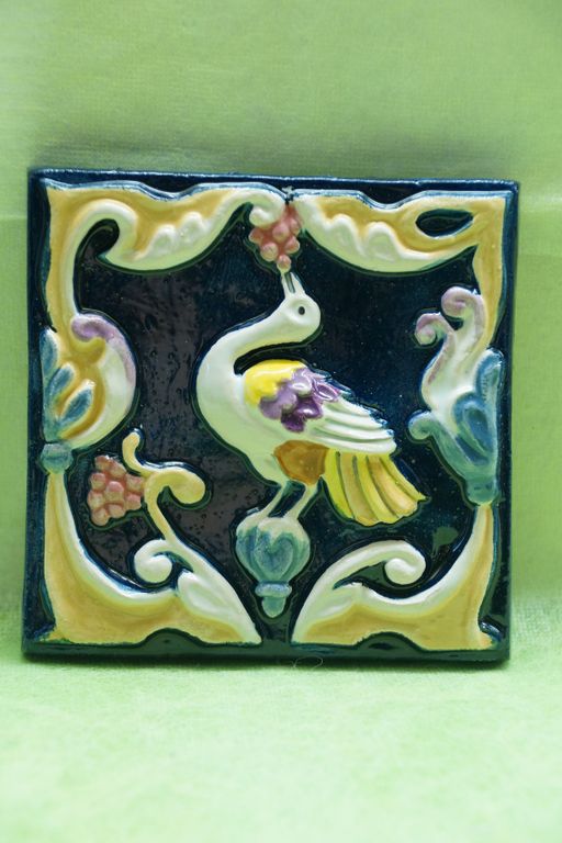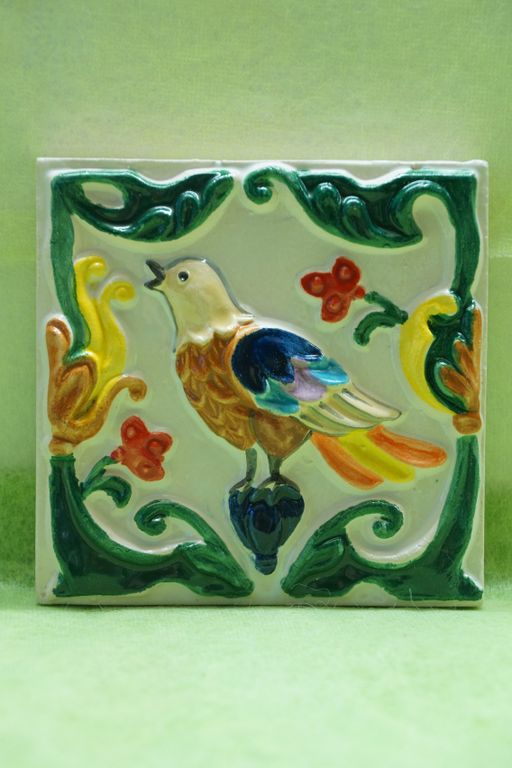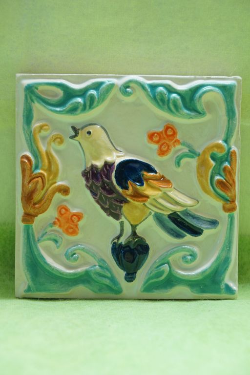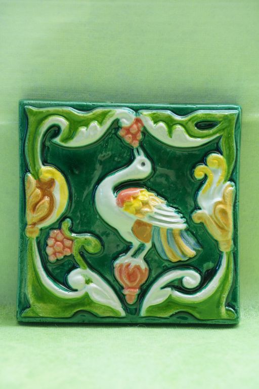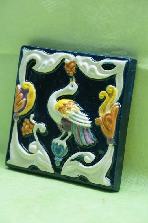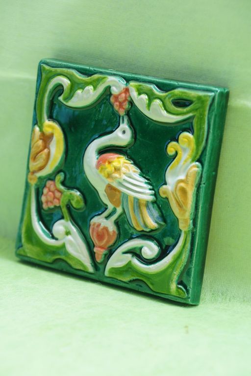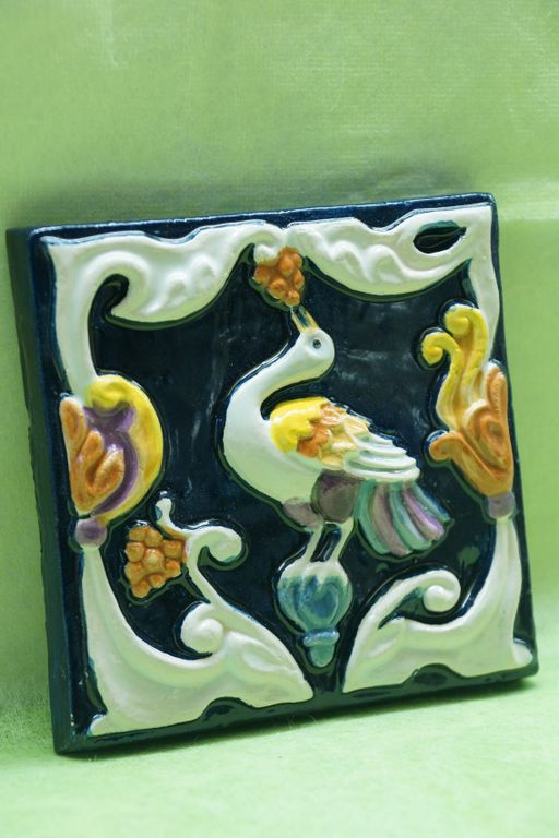 Журавль - изразцовая цветная плитка из серии "Мифические знаки".